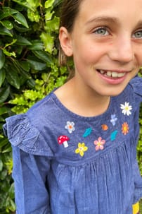 Our April Tunic Top is the perfect versatile piece for growing kids! Its oversized tunic design transforms into a top as your little one grows, offering two looks in one! Crafted from 100% organic cotton cord, this soft and snuggly GOTS certified kidsβ top features pretty embroidered details, shoulder frills and popper fastenings at the back. Plus the elasticated cuffs are great for locking in the warmth!