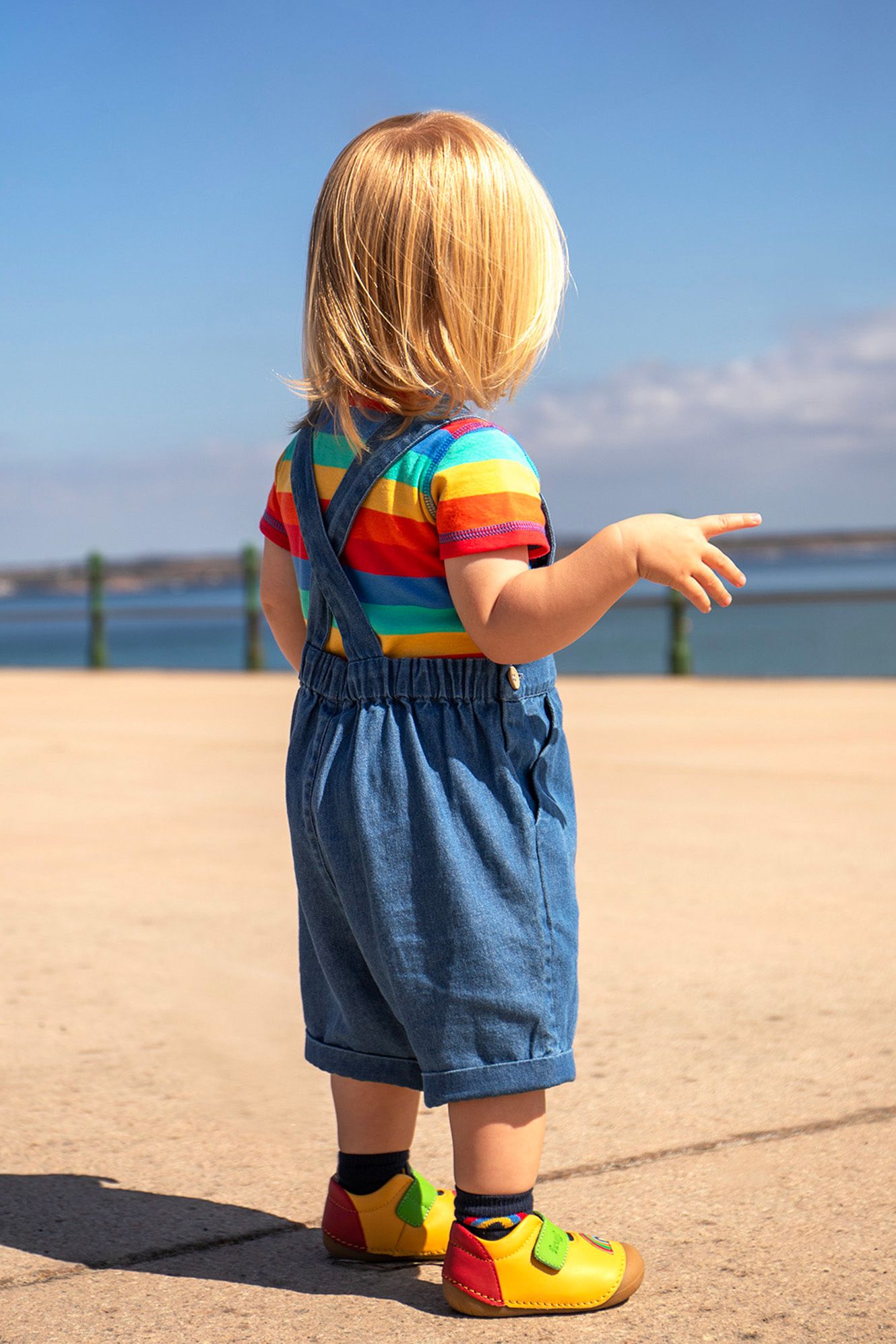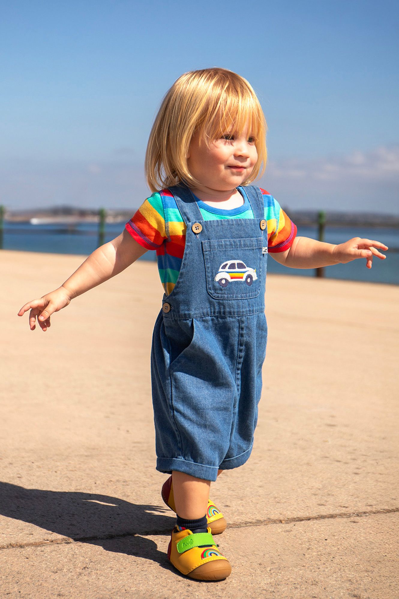 Meet the Carnkie Denim Dungarees – crafted from soft and lightweight organic cotton denim, these dungarees are designed for comfort and practicality. Featuring adjustable shoulder straps, easy side button fastenings, front and side pockets, and short non-fixed cuffs, they are perfect for little ones on the move!