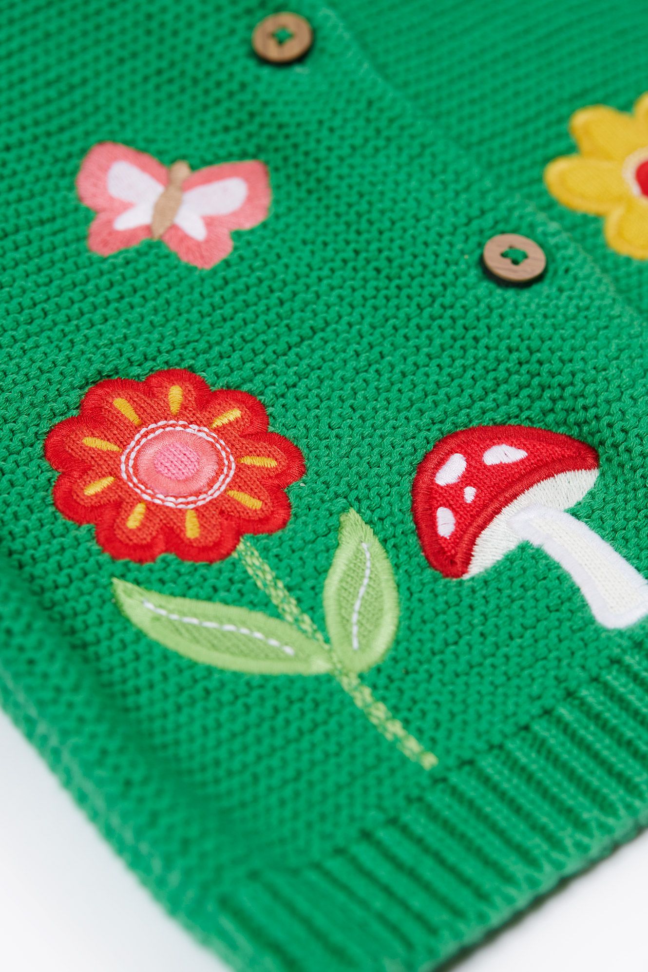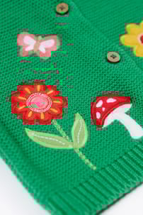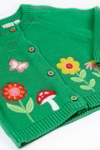 Perfect for cosy autumn walks! We've crafted this long-sleeved Colby Cardigan from 100% knitted organic cotton, which is beautifully soft and snuggly, with no nasty chemicals. In a gorgeous garter stitch with a sweet character appliquรฉ on the front, this baby and toddler cardigan is ideal for layering over your little one's outfits.
