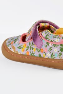 Our Desert T-Bar shoes are ready for little toddles and big adventures! Crafted from organic cotton canvas, they have a durable toe bumper, a comfy cushioned collar, and a handy rip tape closure for getting them on and off in a flash.