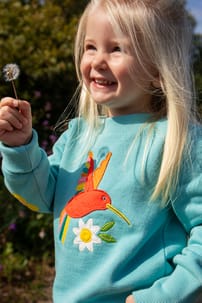 Ensure they are warm and cosy with our Easy On Jumper, crafted from super-soft, durable organic cotton brushback fleece. This jumper features a stretchy overlapping neckband that helps make dressing in the morning a breeze, and the extendable rib cuffs unfold, so the jumper lasts for playtime after playtime.