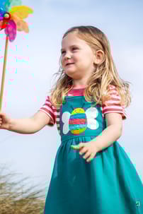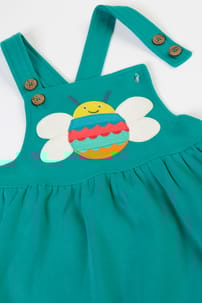 This Enya Pinafore Dress is playtime ready! Pop it over a long or short-sleeved shirt for the perfect adventure-ready outfit. Crafted from organic cotton, this GOTS certified dress has comfy cross over straps with adjustable button fastenings so it grows with your little one. Kids will love the fab interactive detailing on the applique!