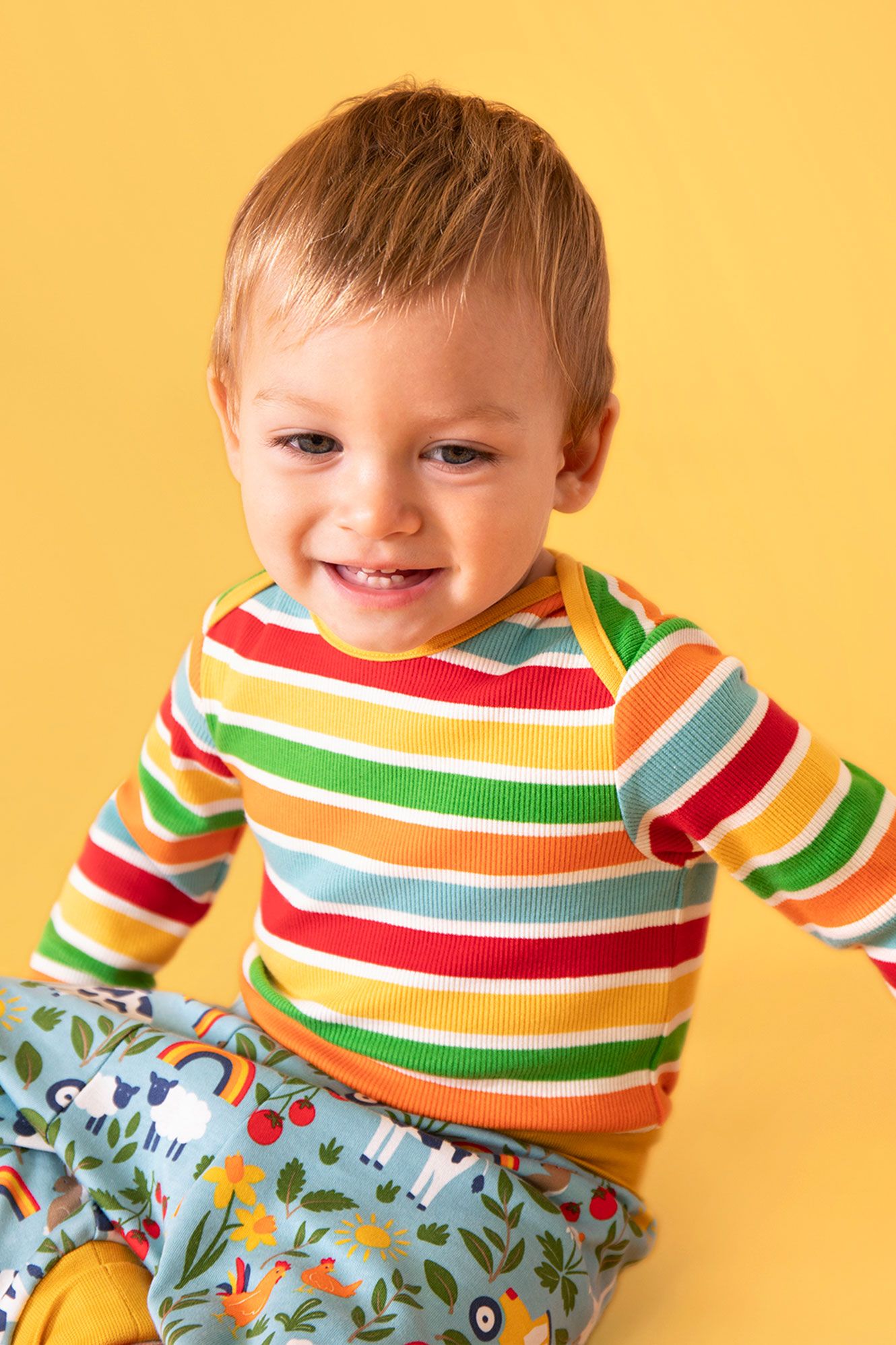 - Bright and colourful Frugi design