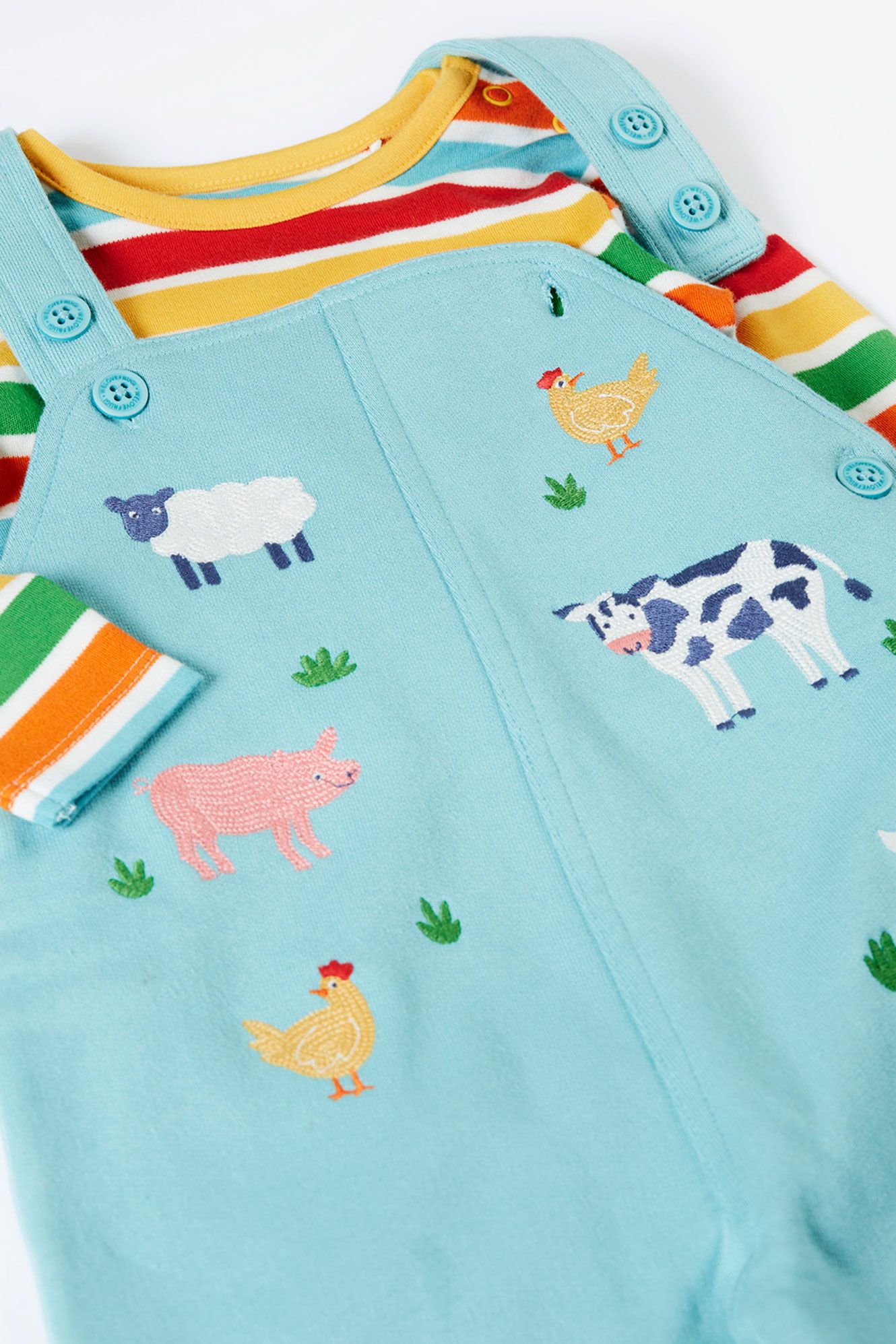 - Bright and colourful Frugi design