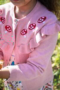 Our Romi Ruffle Cardigan is a gorgeous addition to your little one's outfit, featuring a beautiful ruffle with intricate embroidery detail. This toddler and kids knitted cardigan is crafted from 100% organic cotton, making it super soft and gentle, plus super durable for adventure after adventure. Outfit with dresses, skirts, dungarees, leggings, or trousers to add an extra cosy layer.