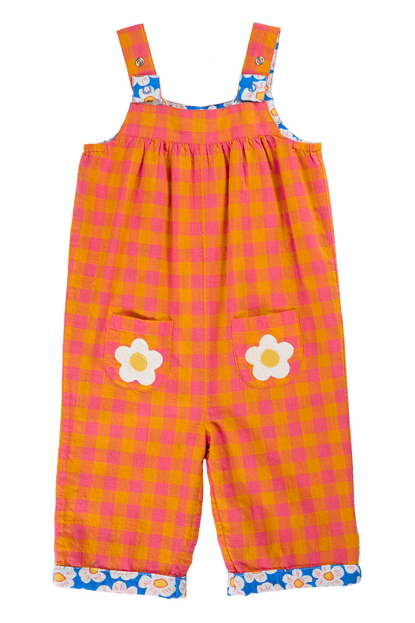 Meet the Sylvie Reversible Dungarees β two playtime-ready looks in one! Made from soft and lightweight organic cotton, these toddler dungarees are designed to grow with your little one thanks to adjustable popper fastening shoulders. One side features handy patch pockets perfect for storing treats and treasures, making these dungarees as practical as they are playful.