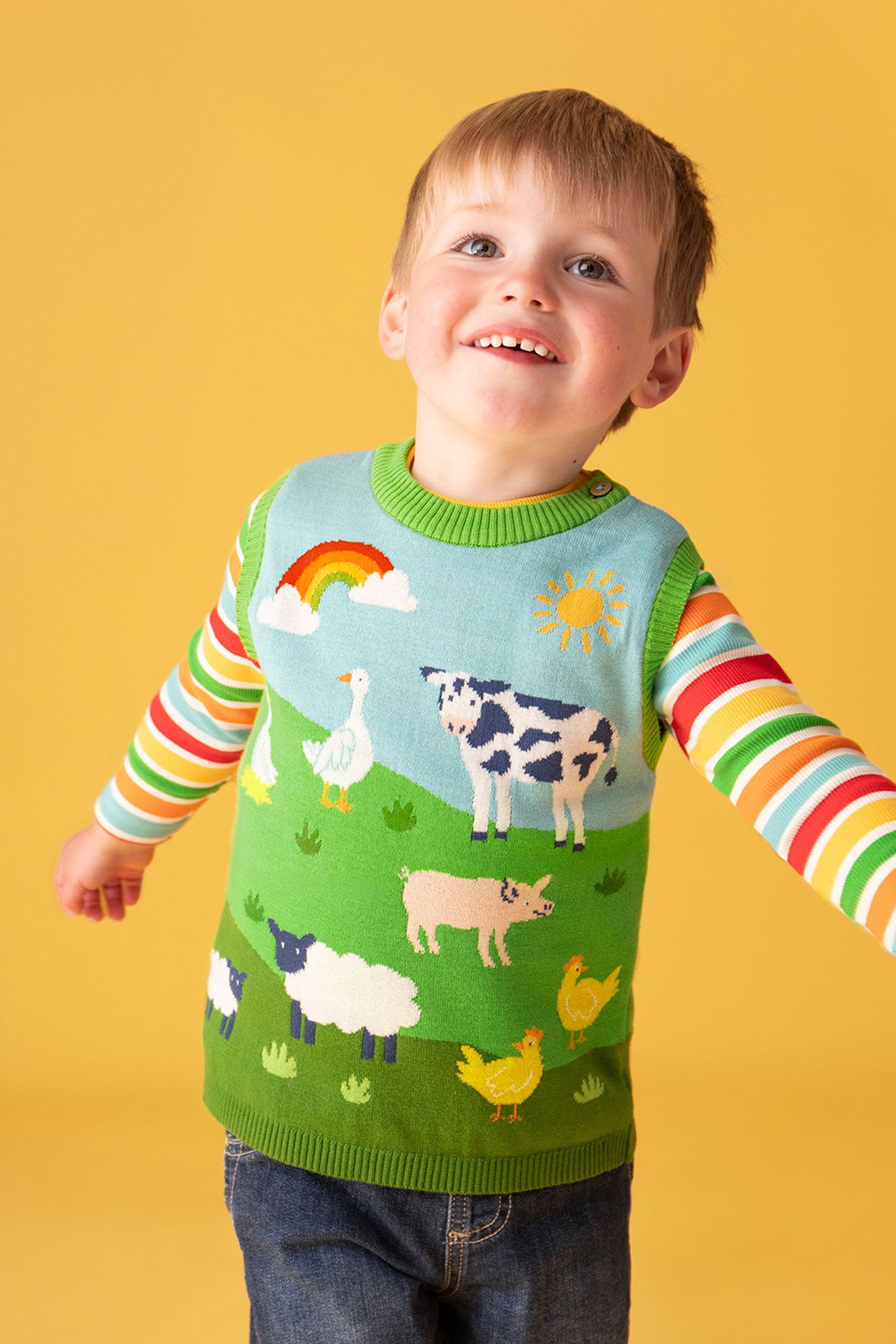 - Bright and colourful Frugi design