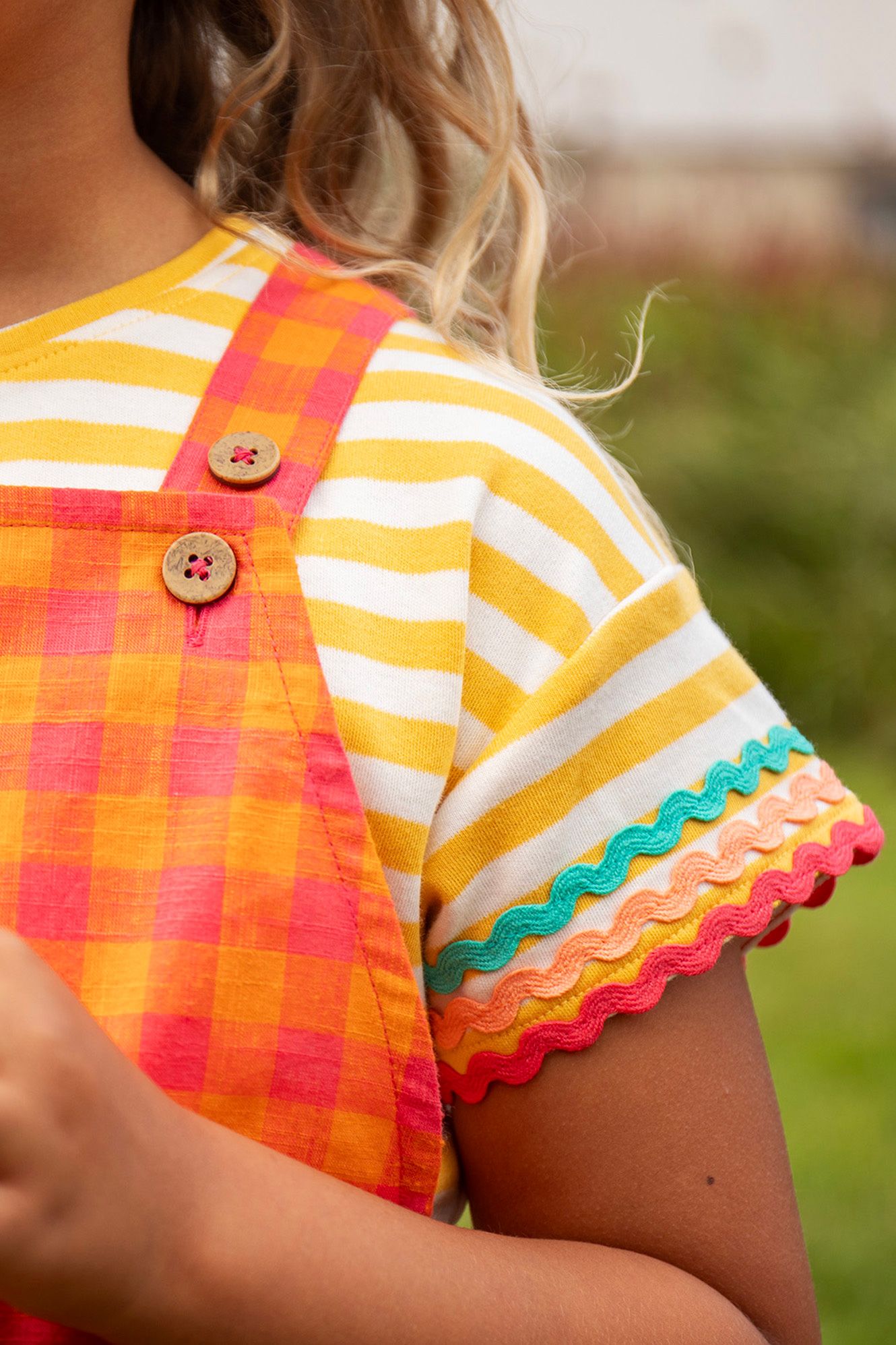 Meet the Thea Ric Rac T-Shirt β crafted from soft organic cotton, this tee is perfect for playful little ones. Featuring charming ric rac trims, it adds a fun and colourful touch to every outfit, combining comfort with a delightful style.