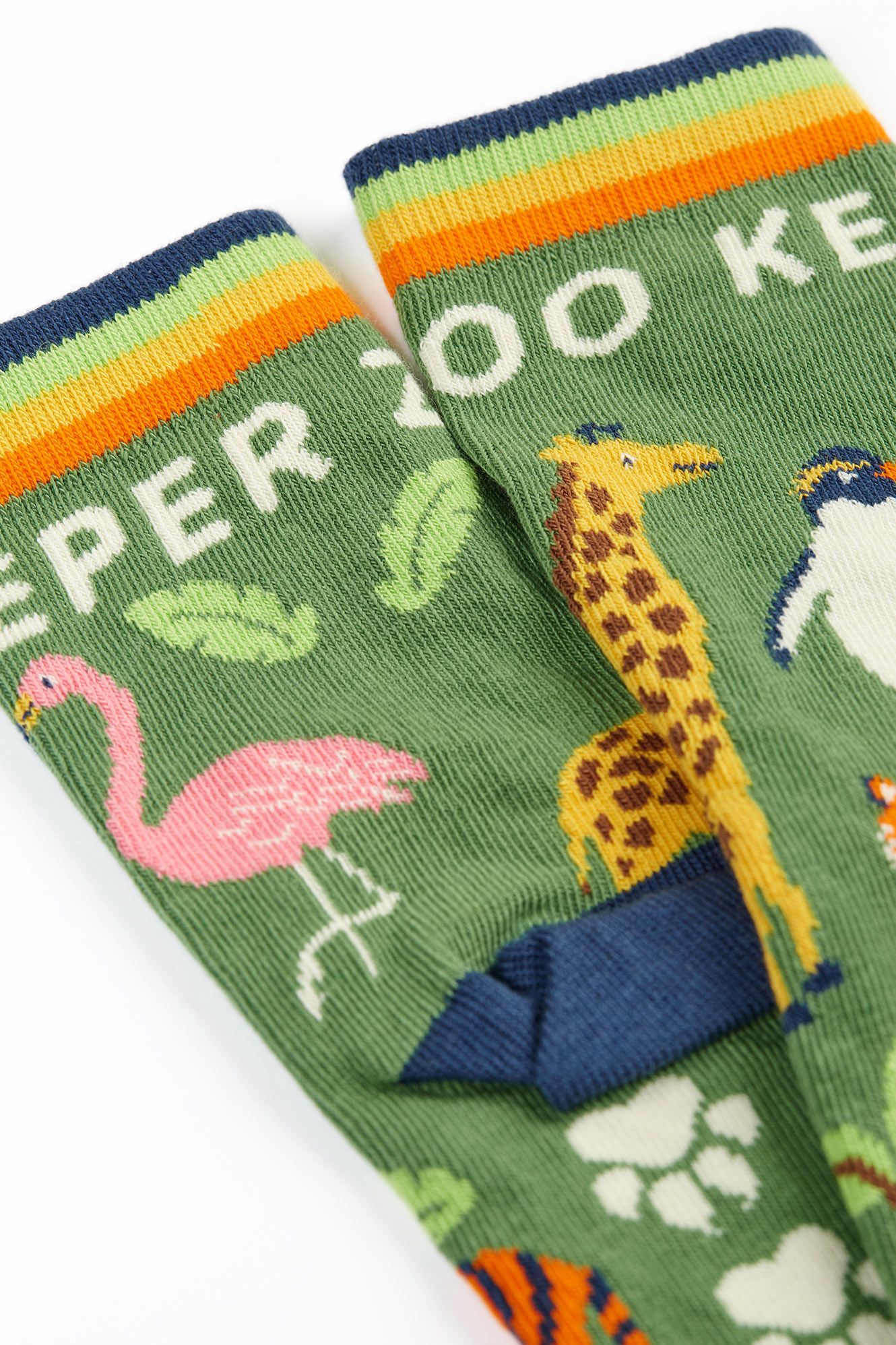 These ZSL Zoo Keeper Socks are perfect for tiny adventurers, featuring grippy soles to help keep little feet steady on the go. Soft mock rib cuffs and smooth flat seams ensure they are super comfy for every mini zoo mission.